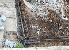Заливка нового бетонного цоколя на сваях,