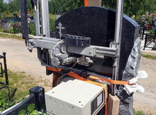 Для того, чтобы достичь максимальной точности изображения, мы использовали гравировальный станок. Установив его перед памятником, мы запустили аппарат. На фотографиях ниже представлен процесс гравировки станком.